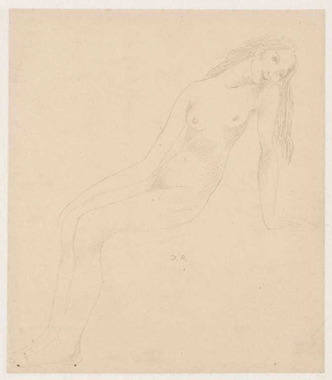 Zittende naakte vrouw