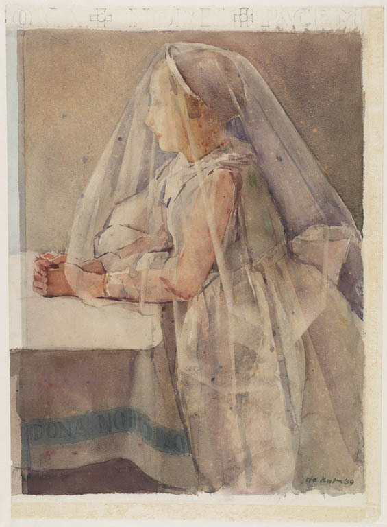 Biddende gesluierde jonge vrouw (Communicantje)