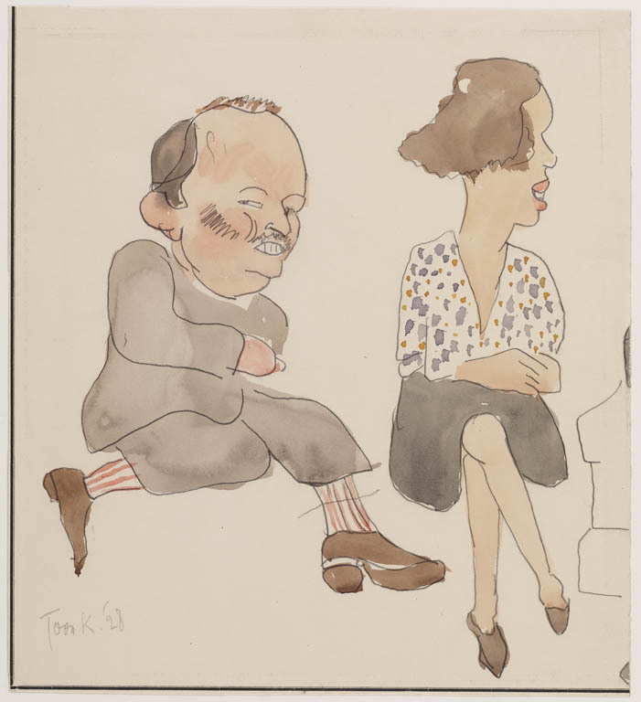 Man en vrouw zittend op een bank (karikatuur)