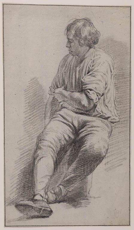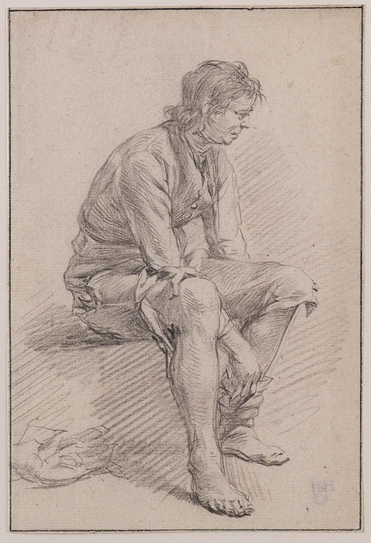 Modelstudie van zittende man met sok
