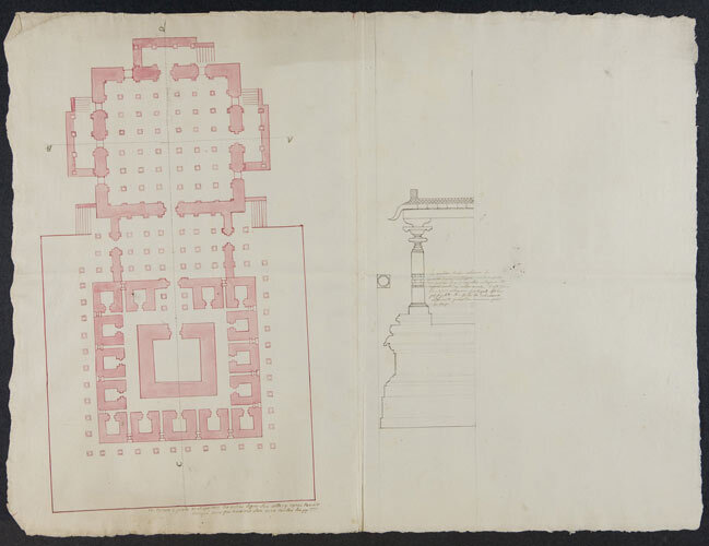 Plattegrond en profiel van een Hindoe tempel