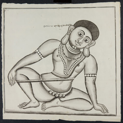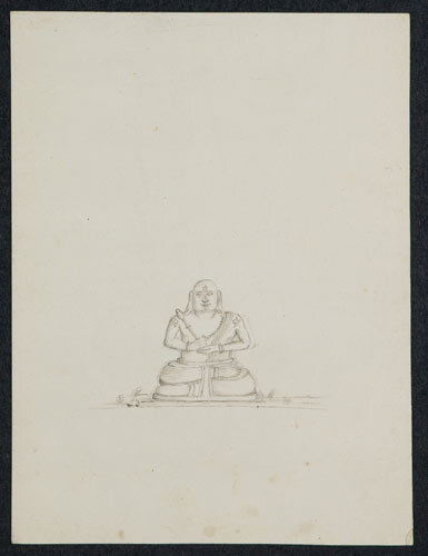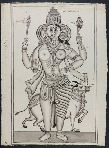 Tekening van een tempelreliëf: Shiva en stier Nandi