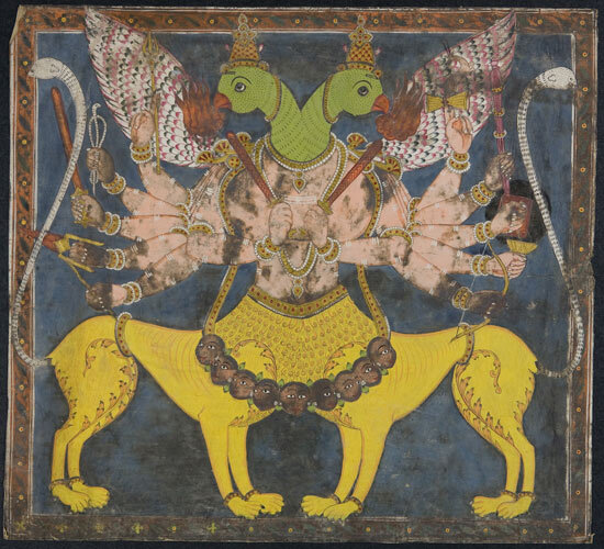 Hindoe godheid met 12 armen, lichaam van 2 leeuwen e...