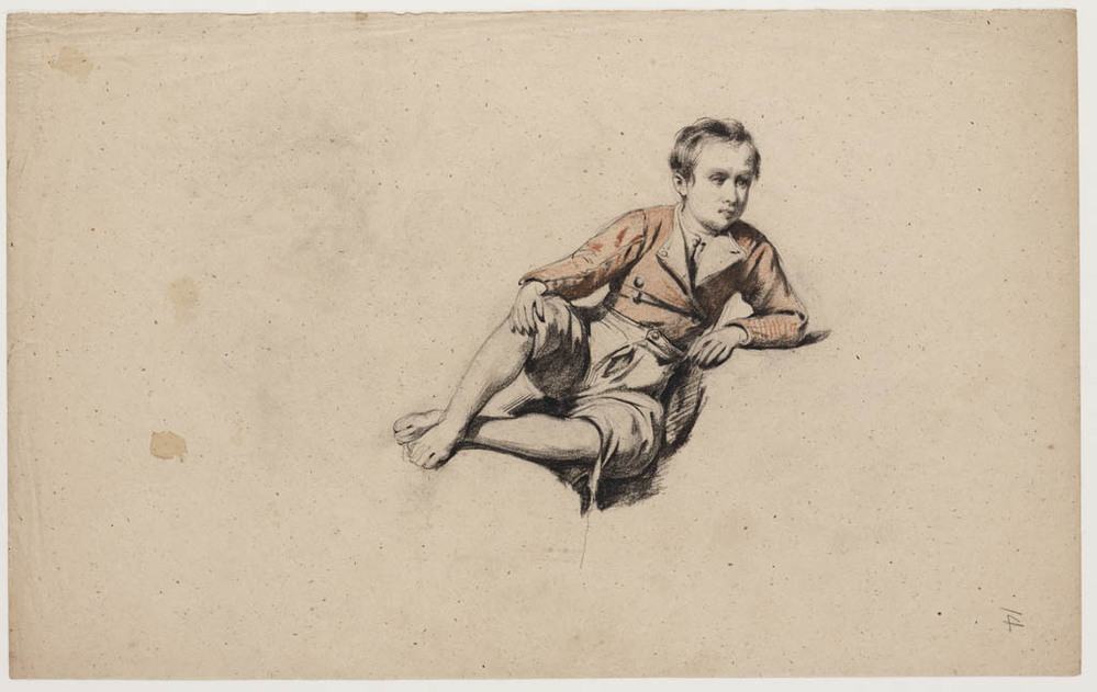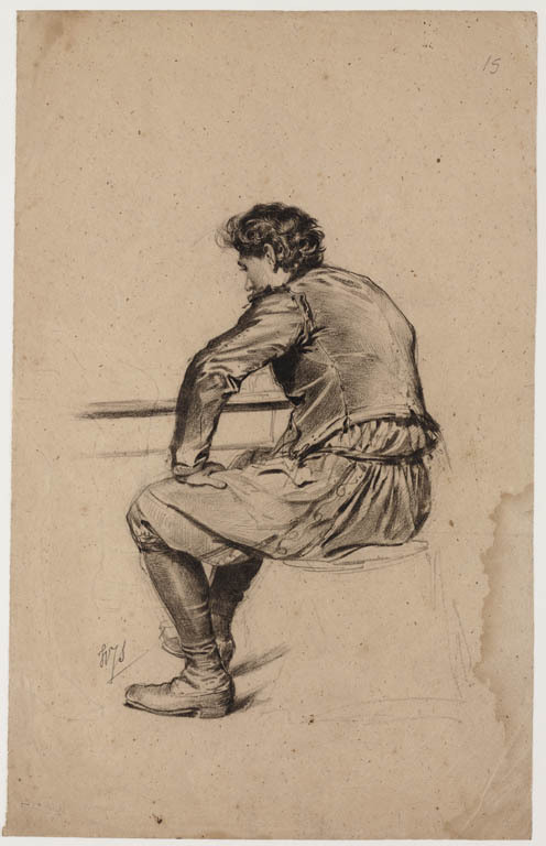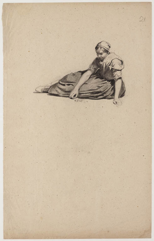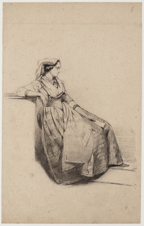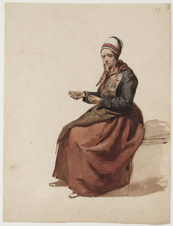 Zittende vrouw in klederdracht (Italiaans?)