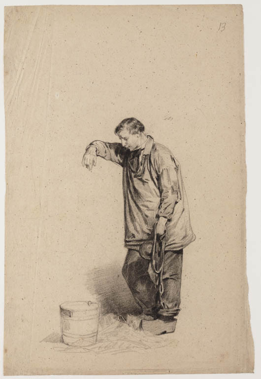 Staande man op klompen met emmer