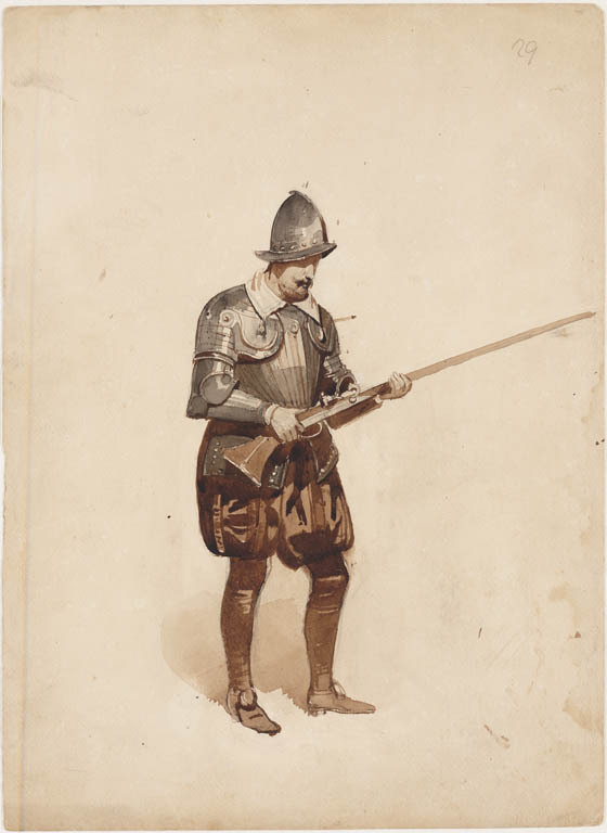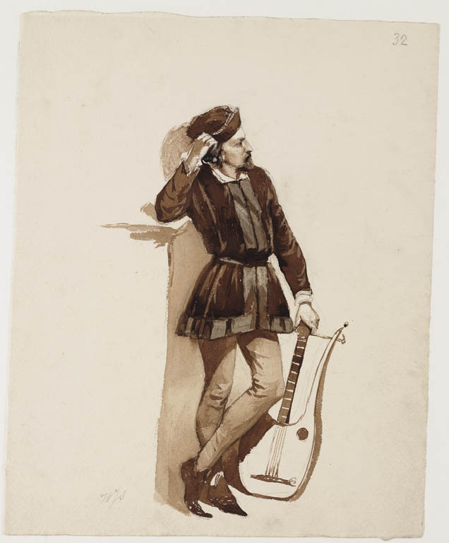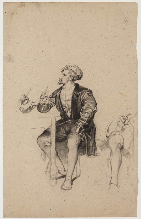 Zittende man in laat 16de-eeuws kostuum