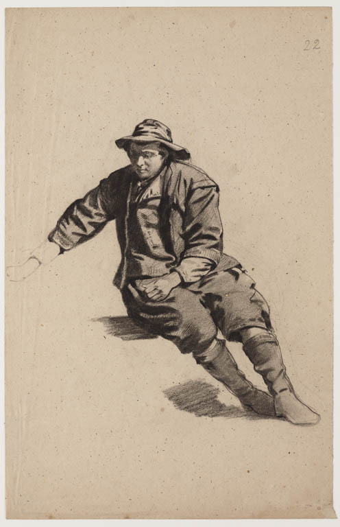 Zittende man met hoed.