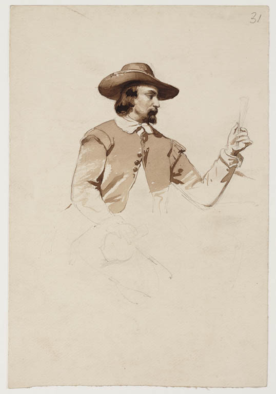 Zittende man in 17de-eeuws kostuum