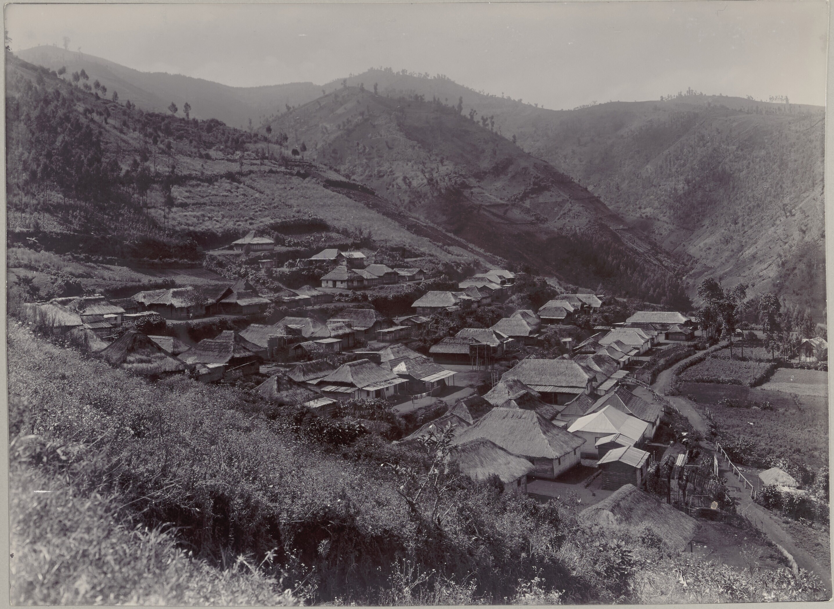 Gezicht over het dorp Ledok in het Tenggergebergte b...