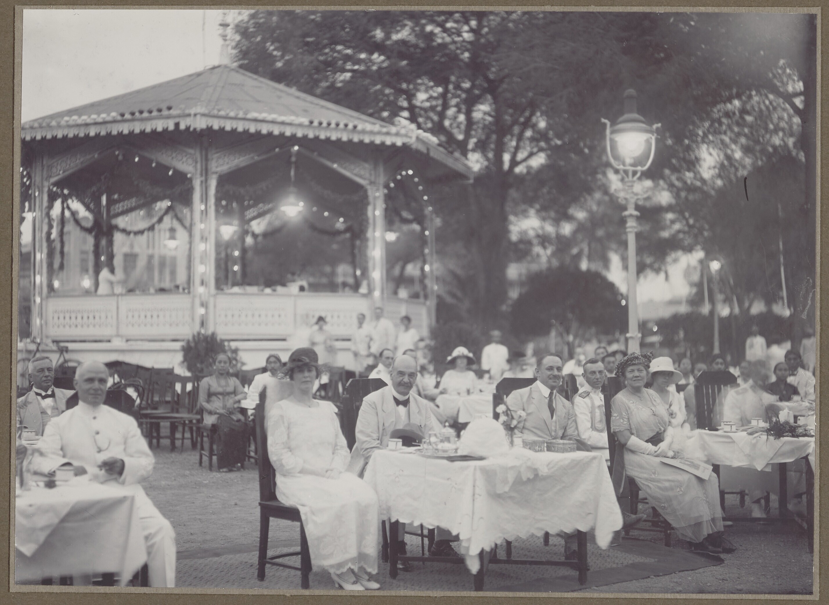 Gouverneur Generaal Fock aan de koffie tijdens zijn ...
