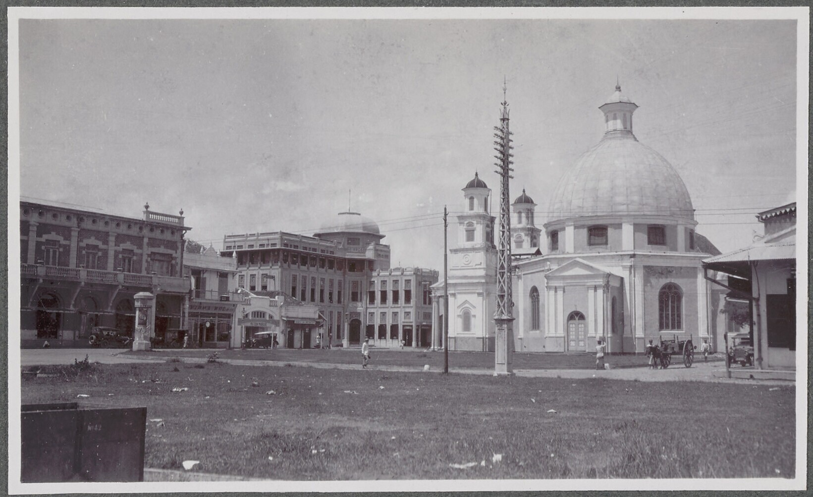 Gezicht over Semarang met onder meer de Koepelkerk e...