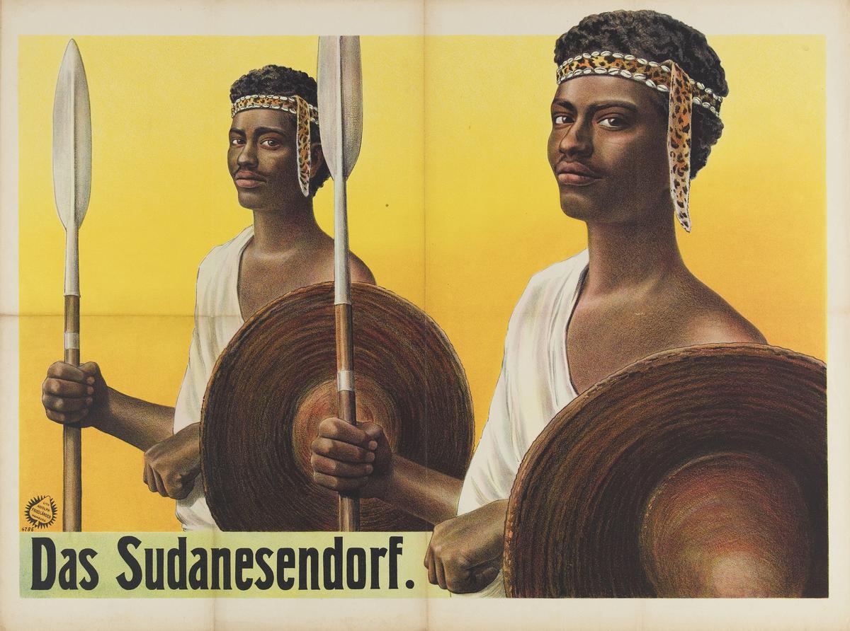 Afbeelding met tekst: "Sam's Negerdorf - Männer, Wei...
