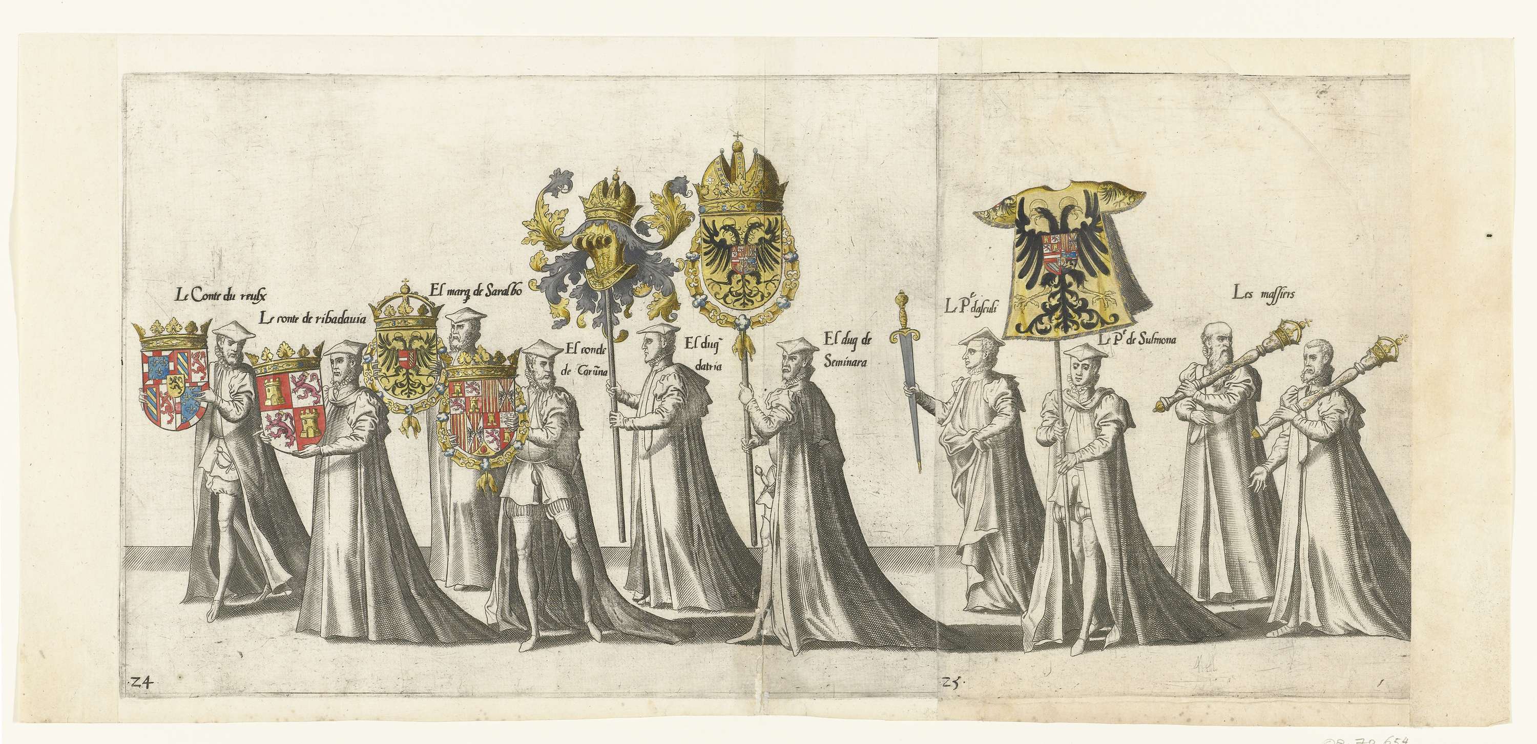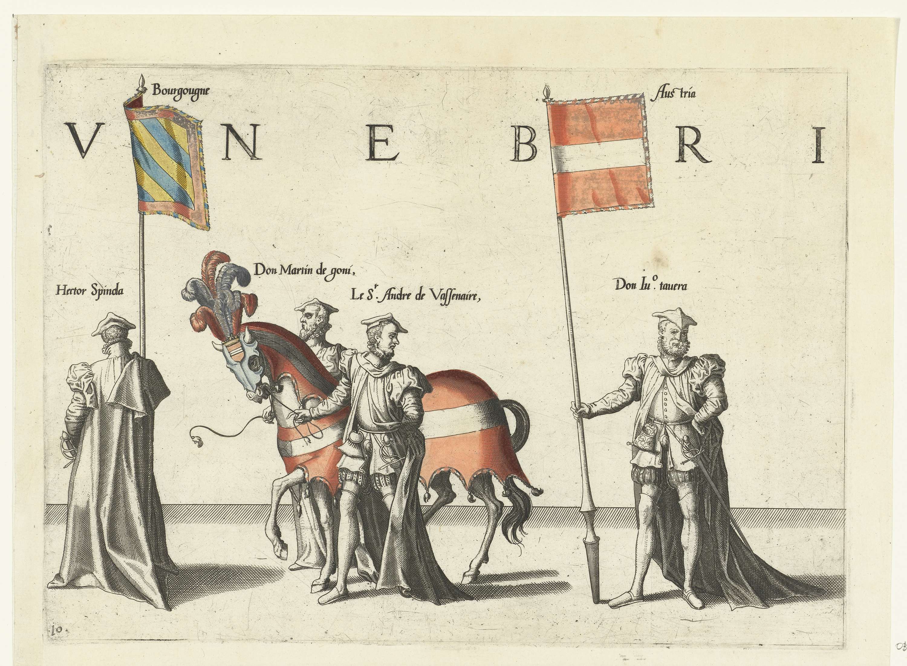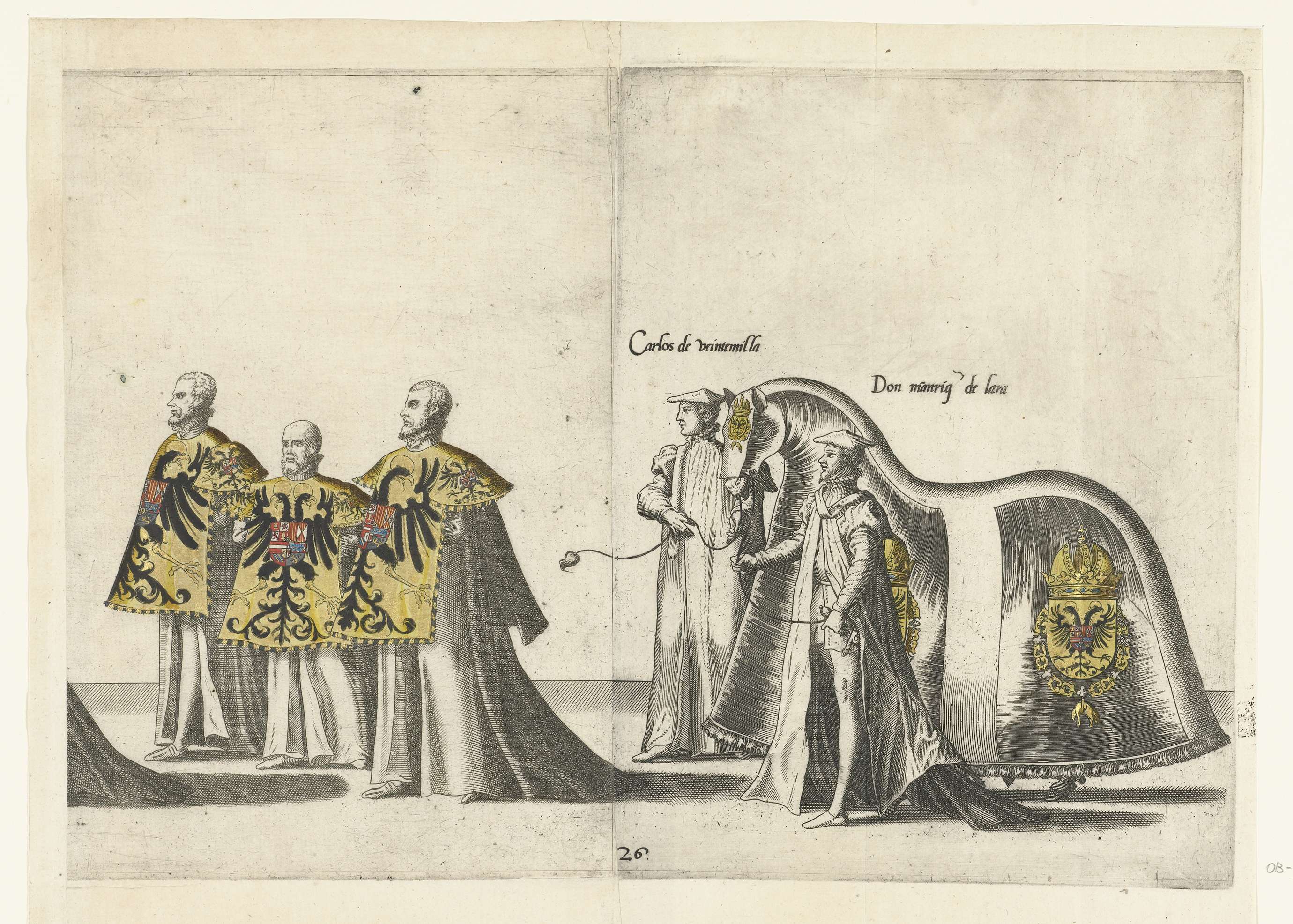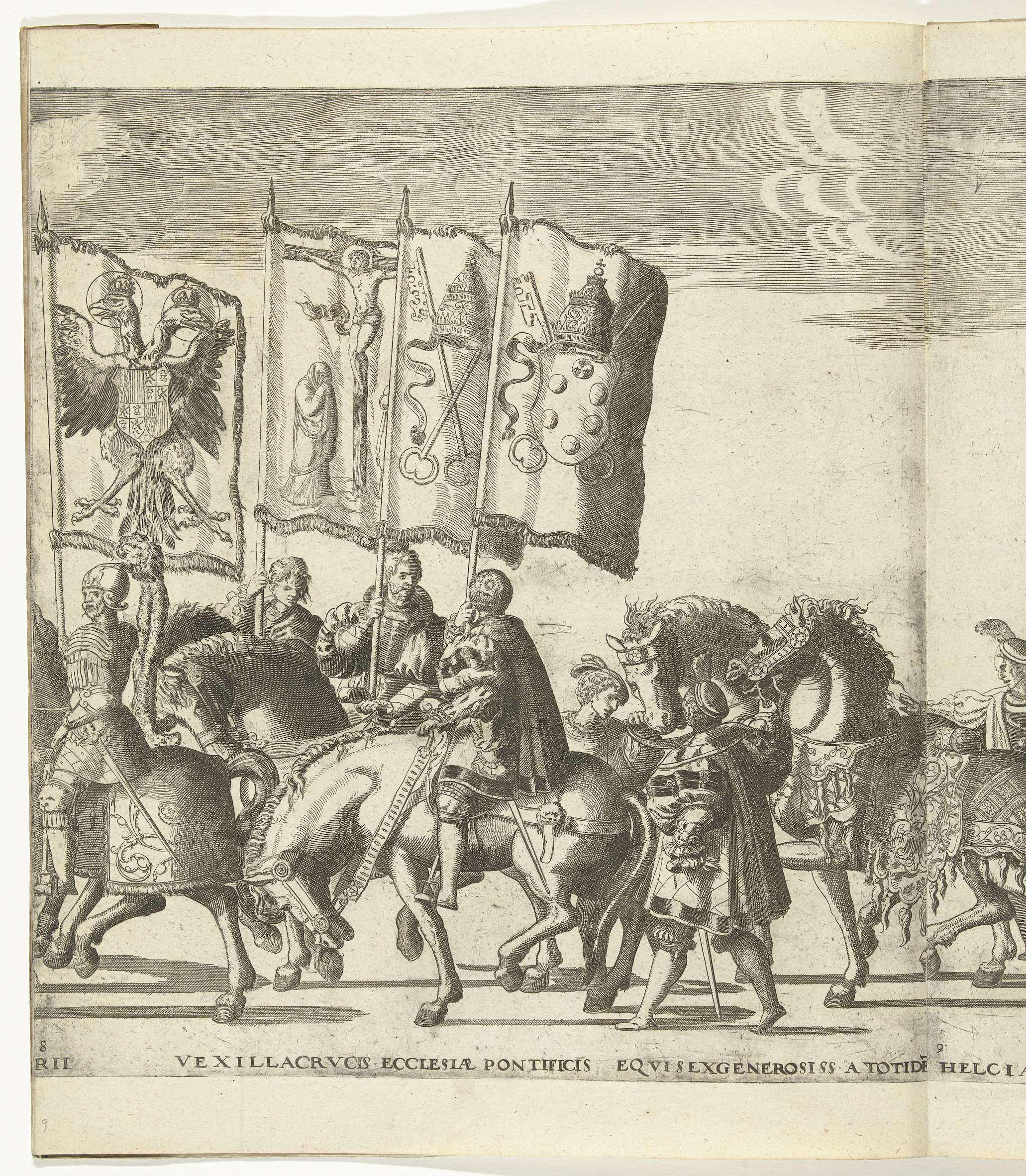 Vaandeldragers met wapens van Habsburg en de paus va...