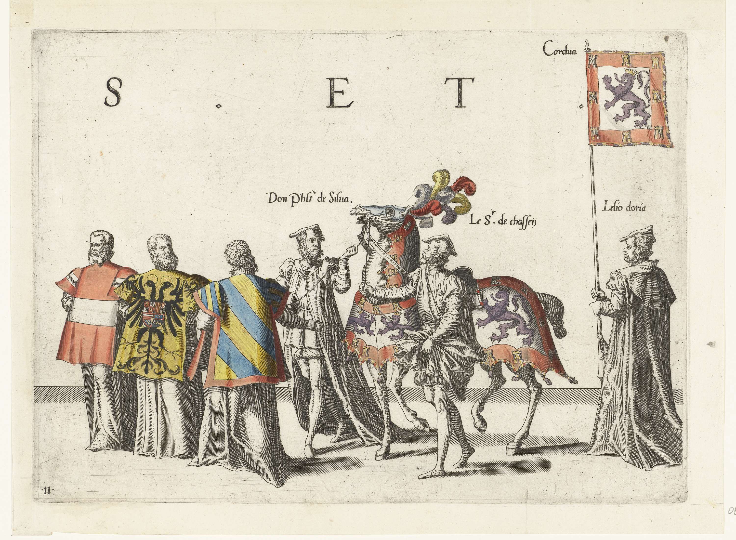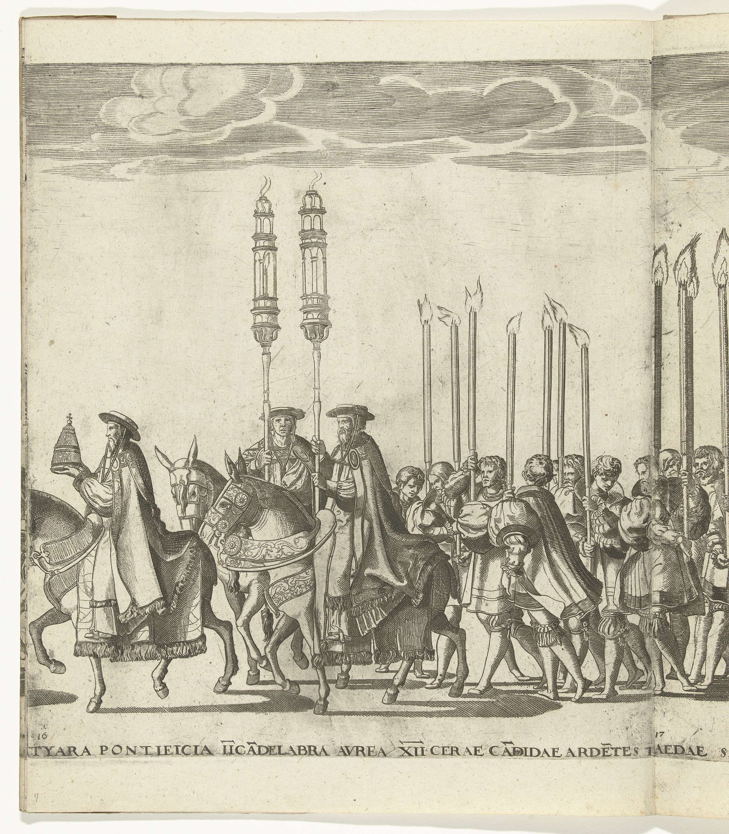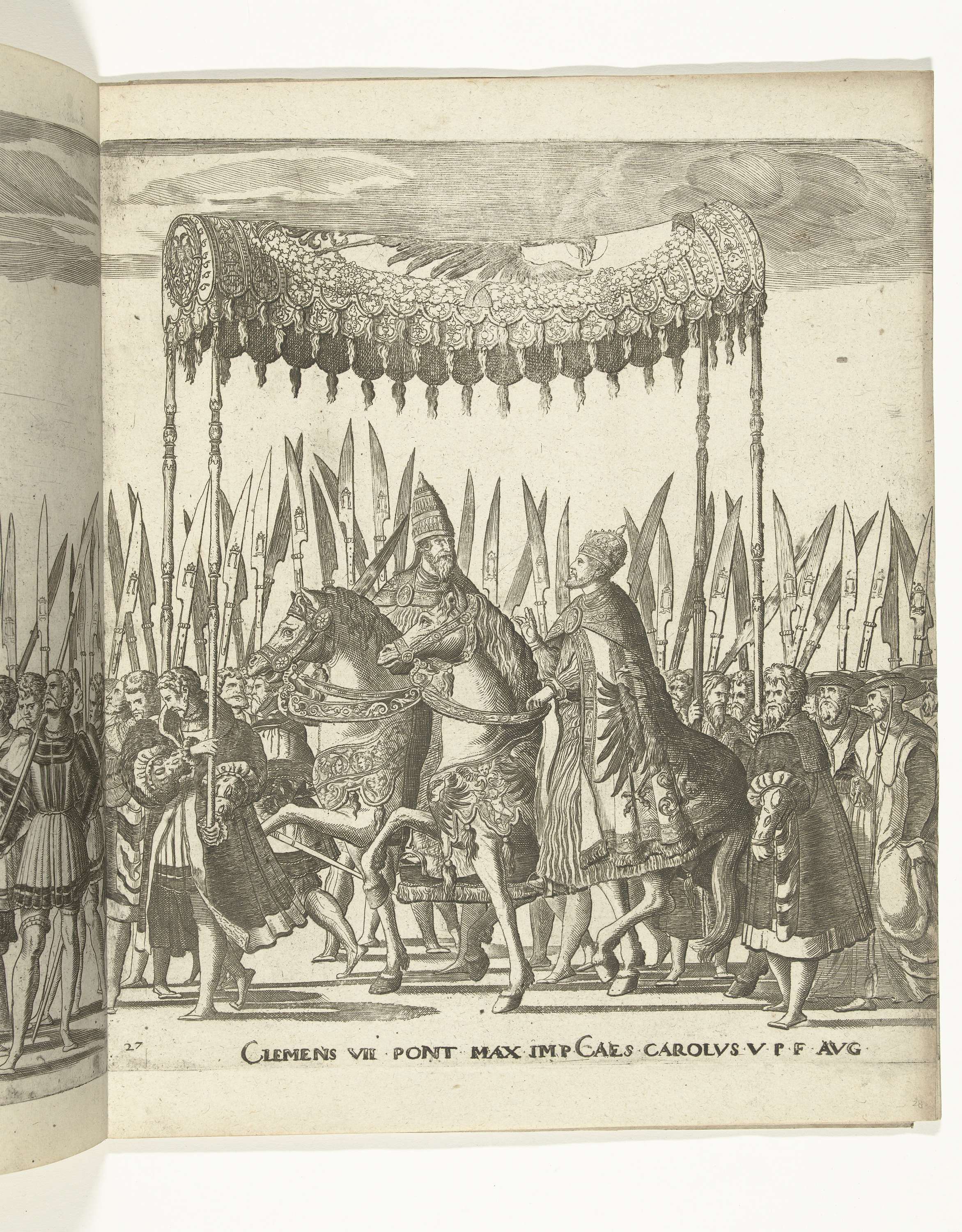 Vaandeldragers met wapens van Habsburg en de paus va...