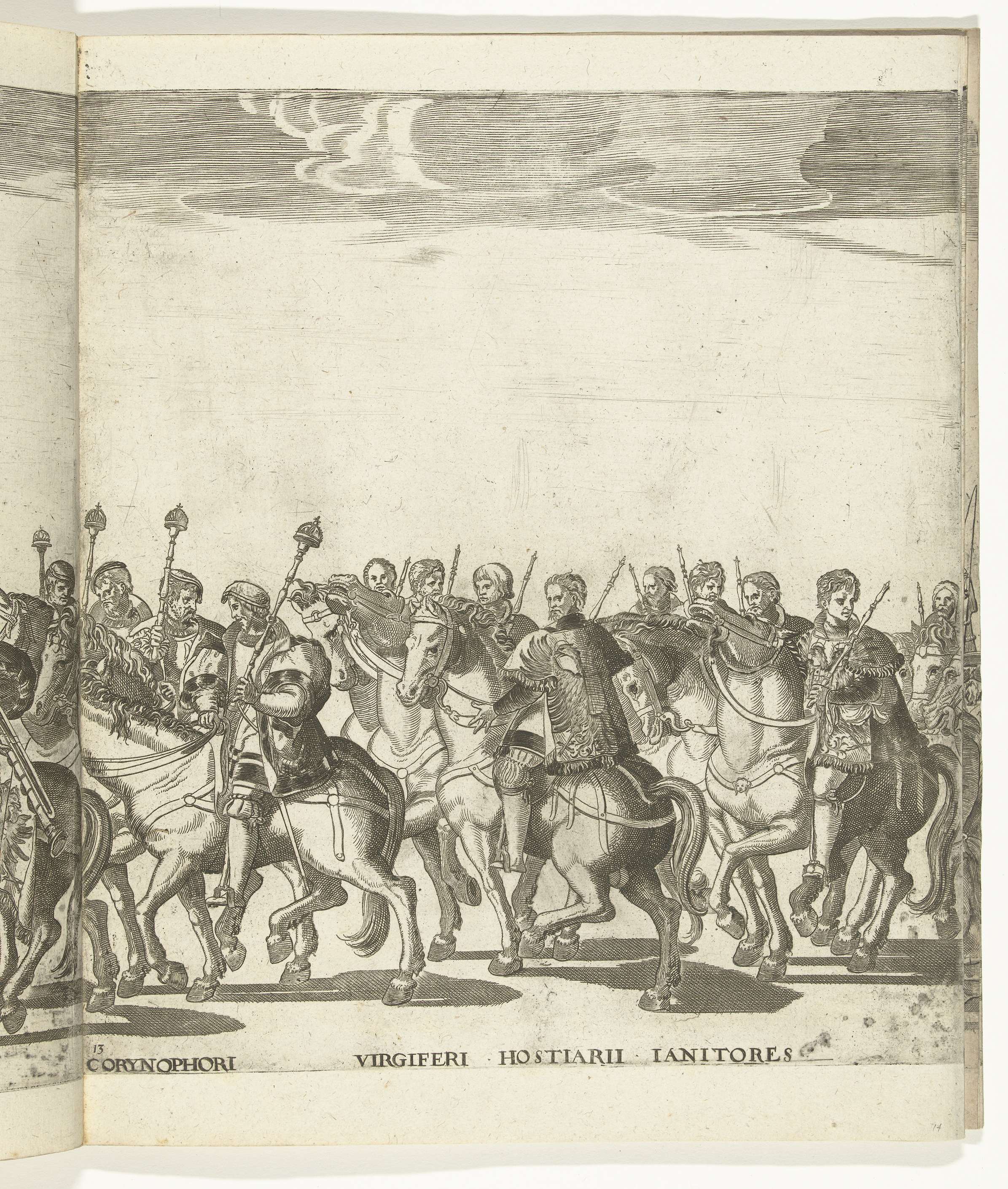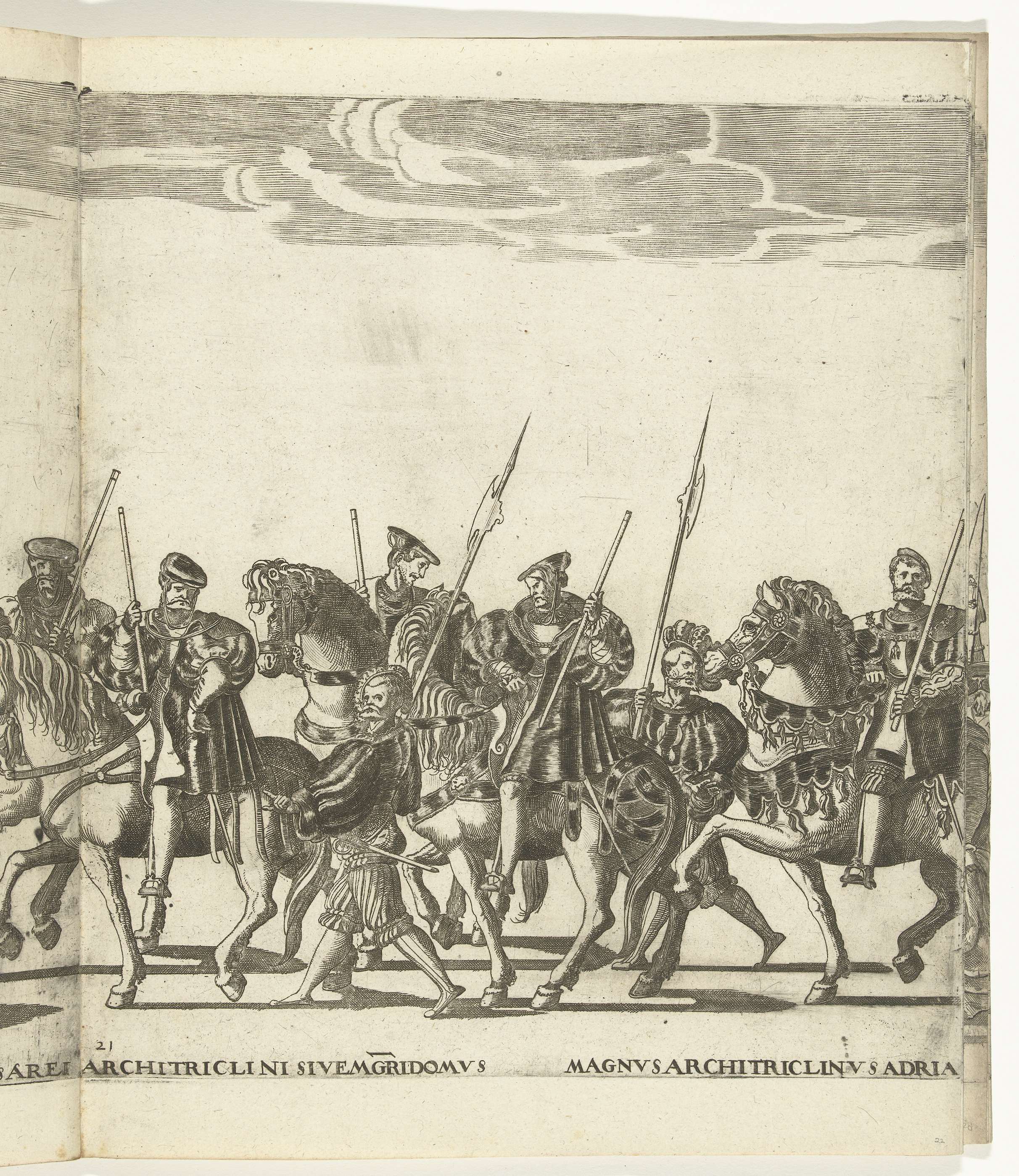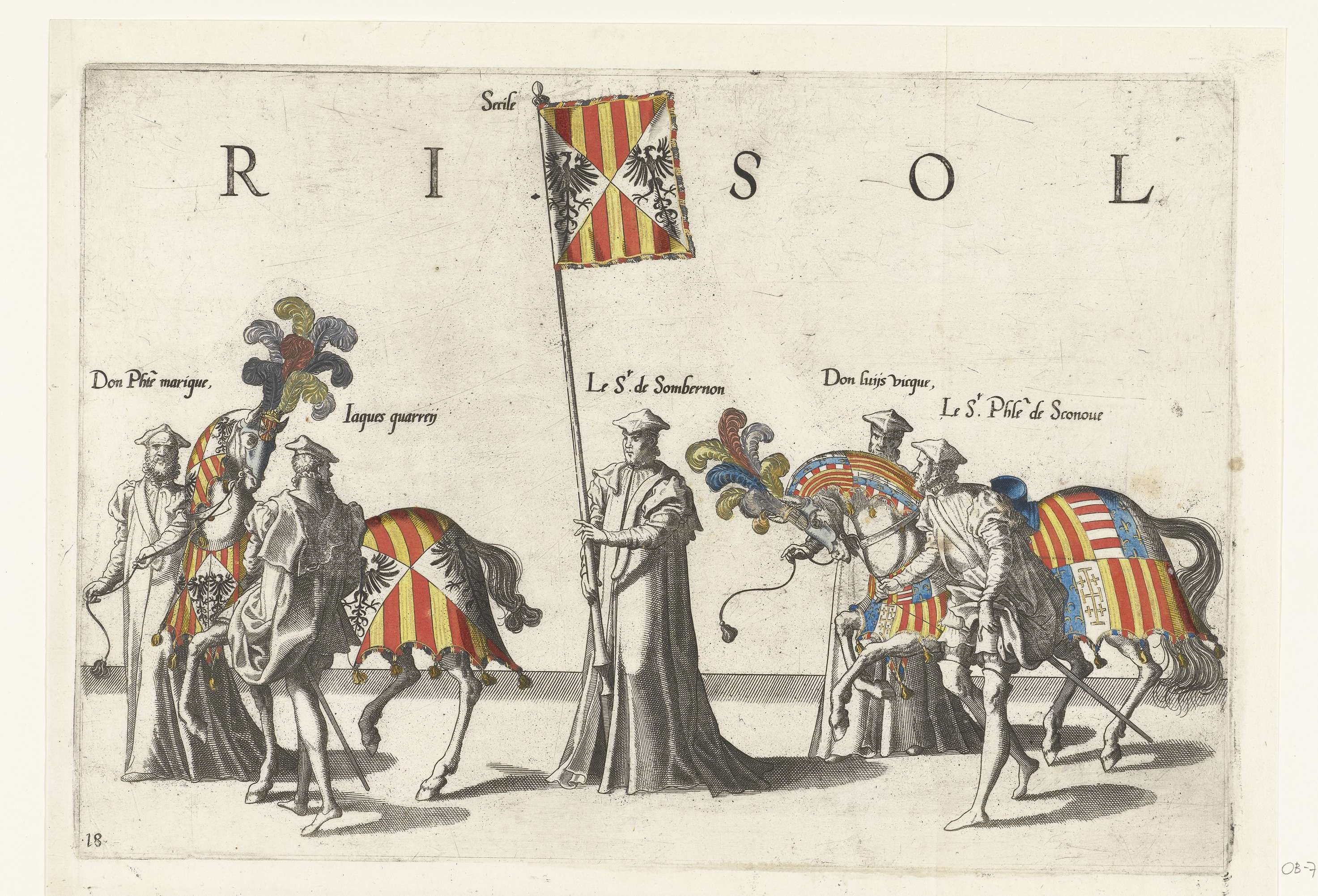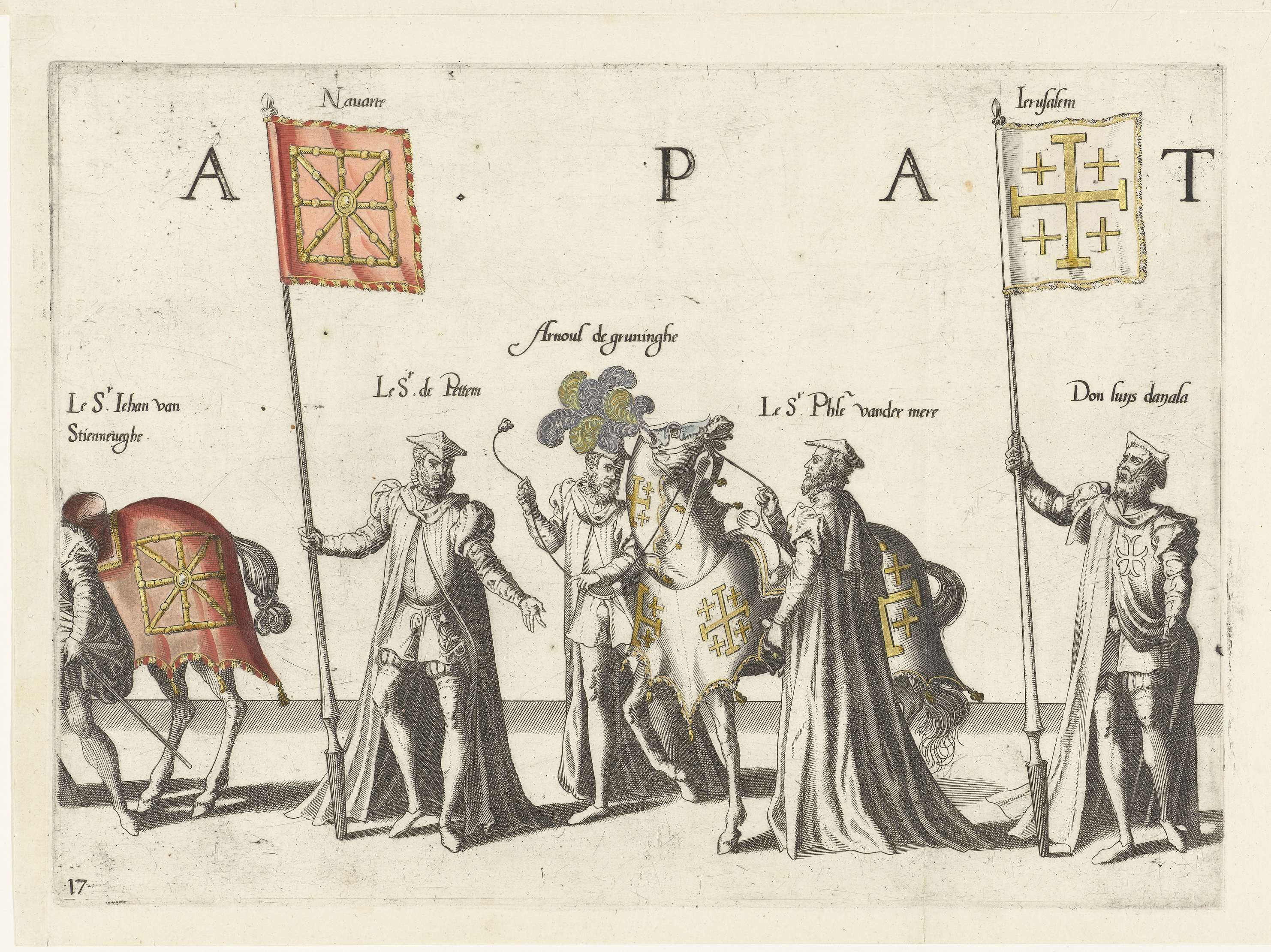 Vaandeldragers met wapens van Habsburg en de paus va...