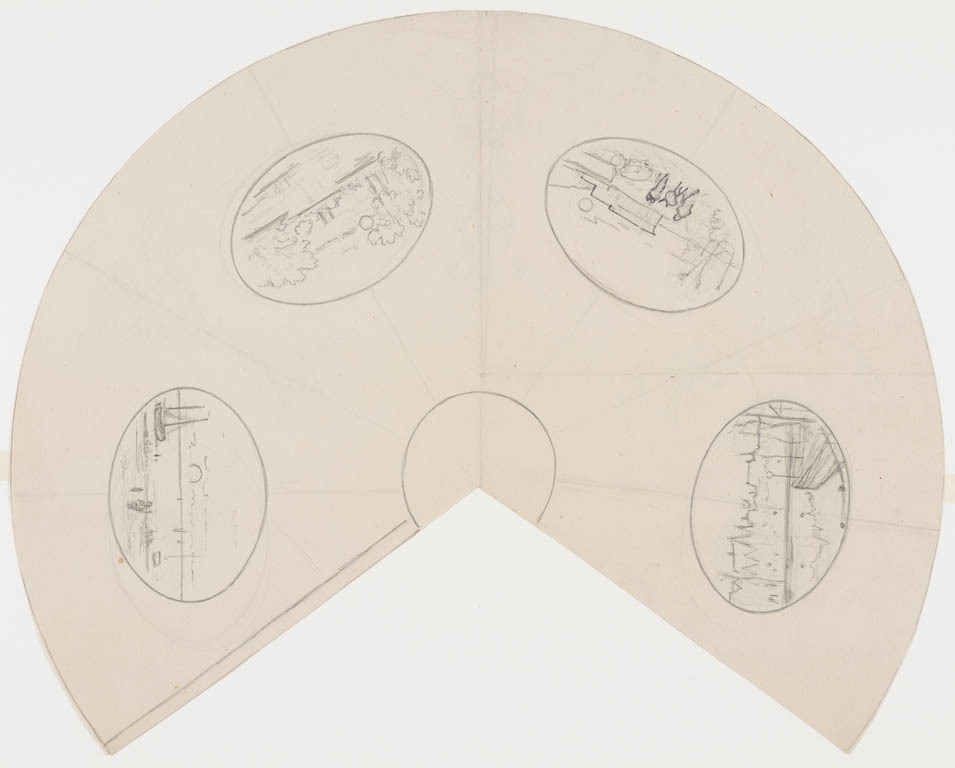 4 medaillons waar landelijke taferelen zijn afgebeeld