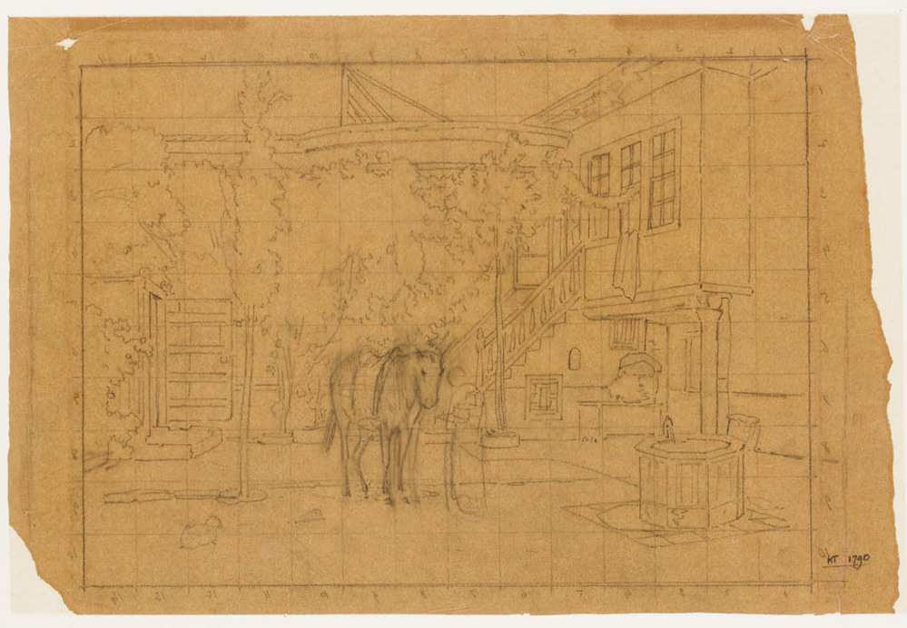 Werktekening voor 'Binnenplaats van een huis in Dama...