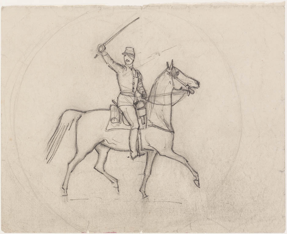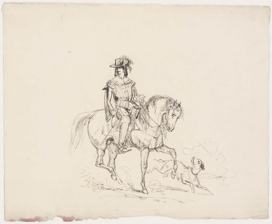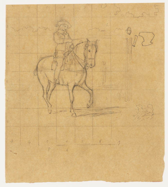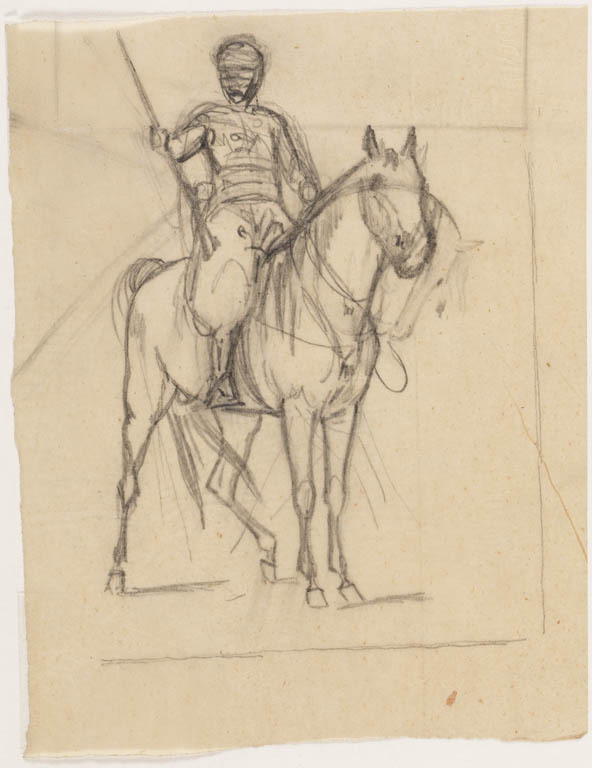Schets van gewapende ruiter te paard