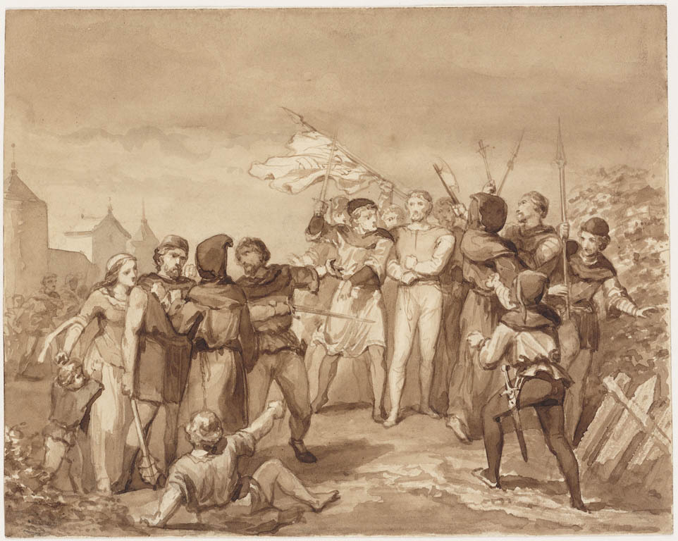 gewapende middeleeuwse mannen en burgers