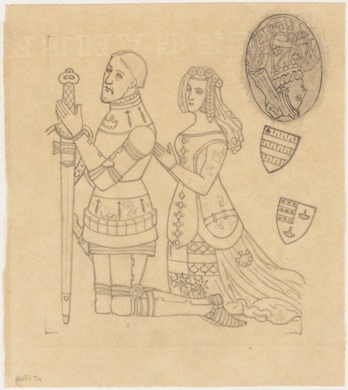 knielende ridder en gemalin met hun kwartieren