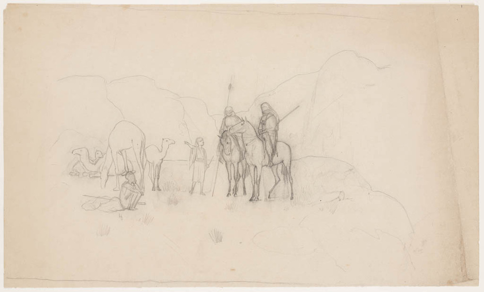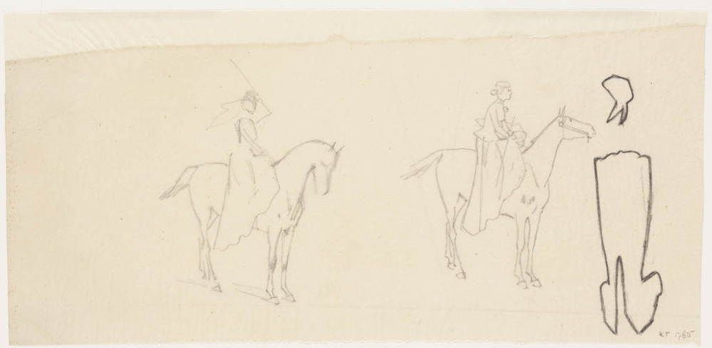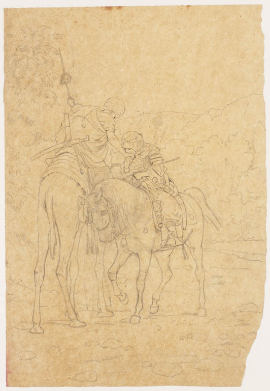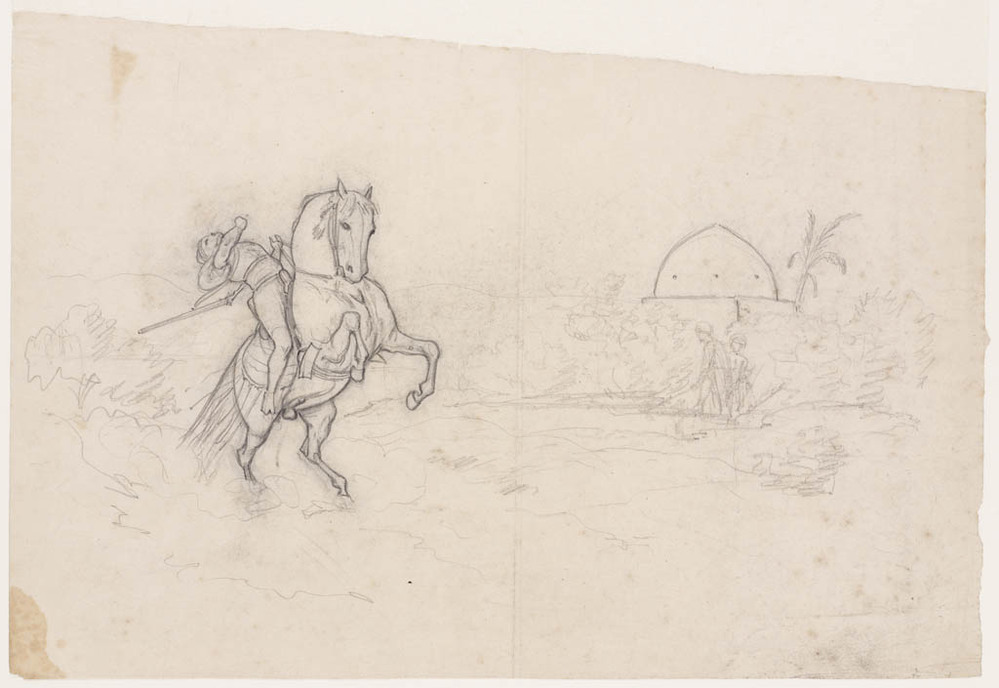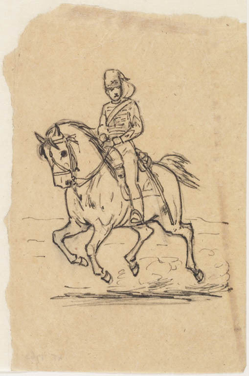 Twee schetsen van oosterse ruiter te paard