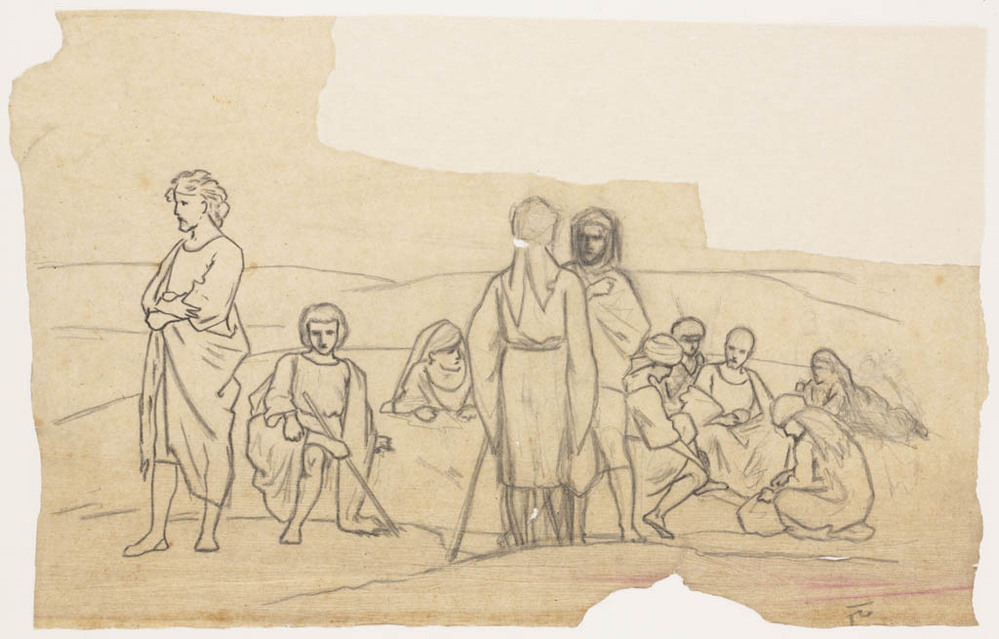 schets van musicerende jonge mannen