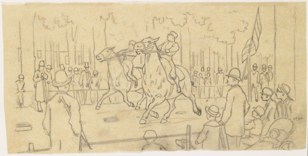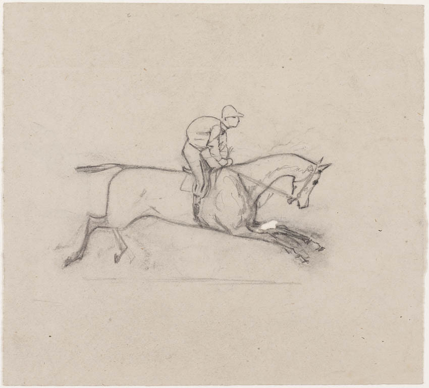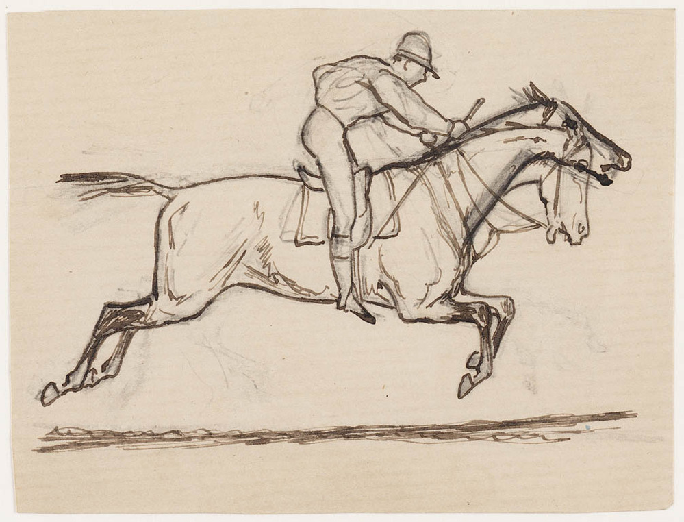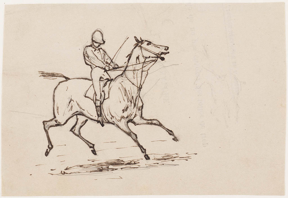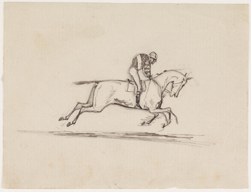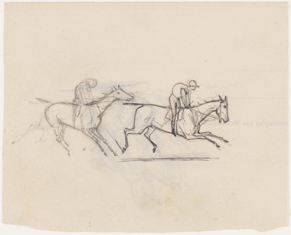 4 schetsen jockeys te paard