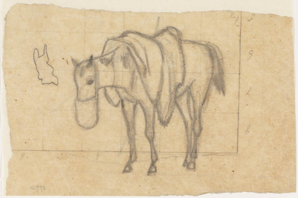 twee schetsen van een paard