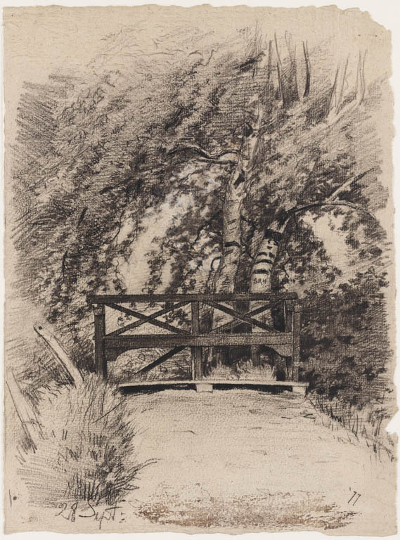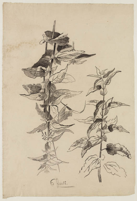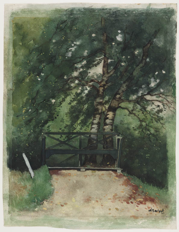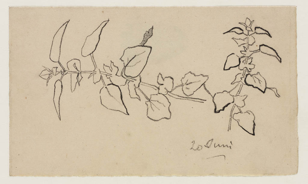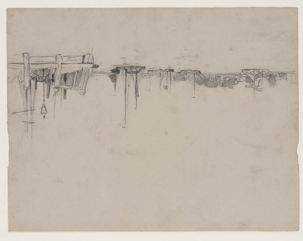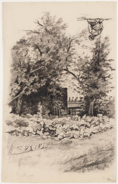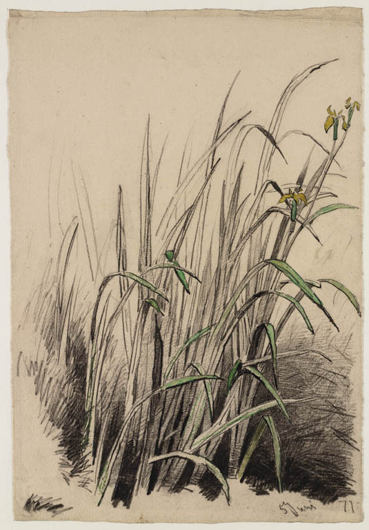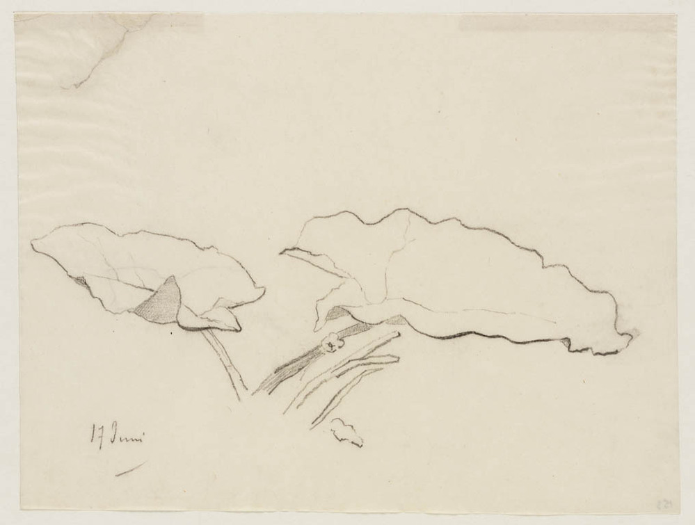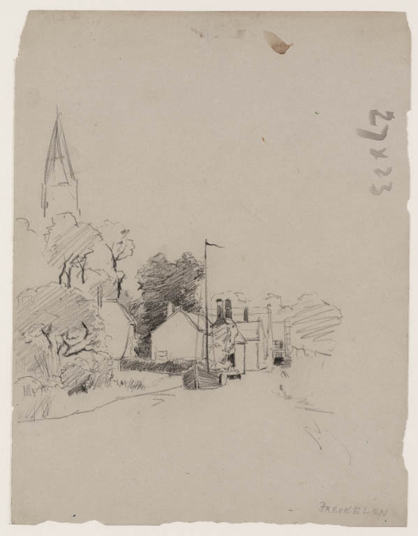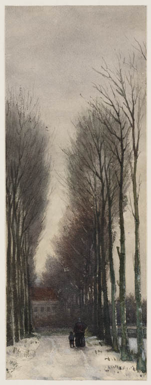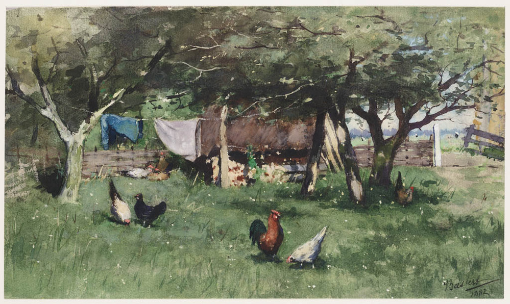 Tweedelige tekening: Landschap met eenden aan de slo...