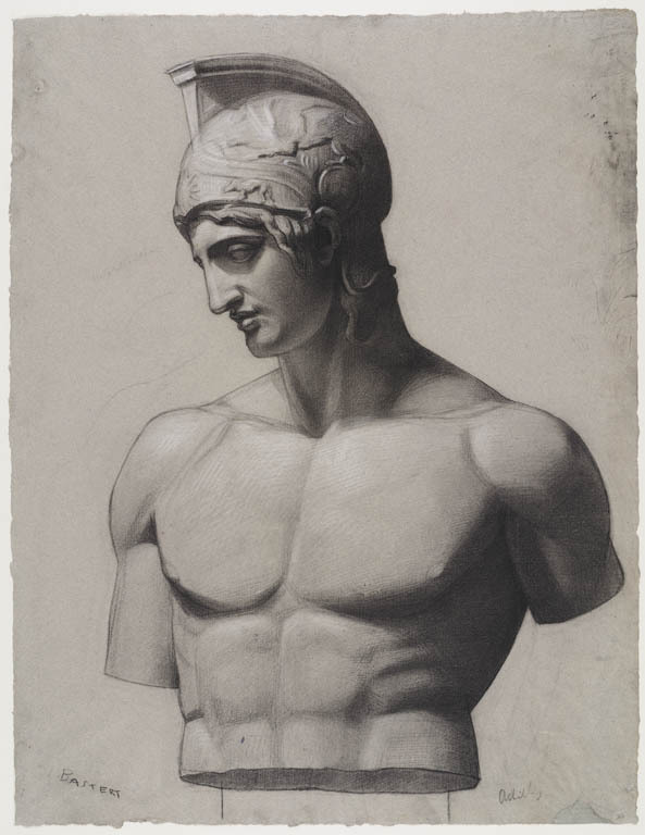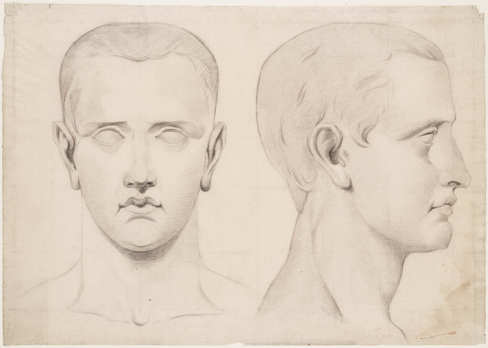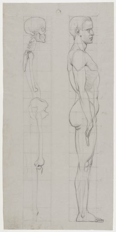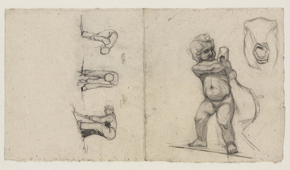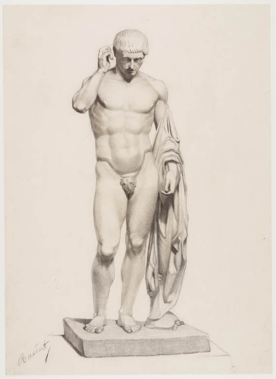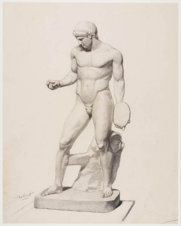Beeld van een mannelijk naakt van opzij, met eenjong...
