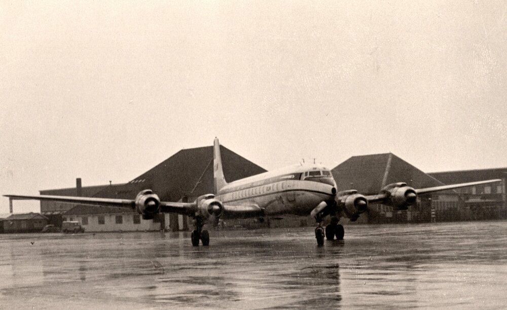 De taxiënde Douglas DC -7 C met daarin Calluna XVI, ...