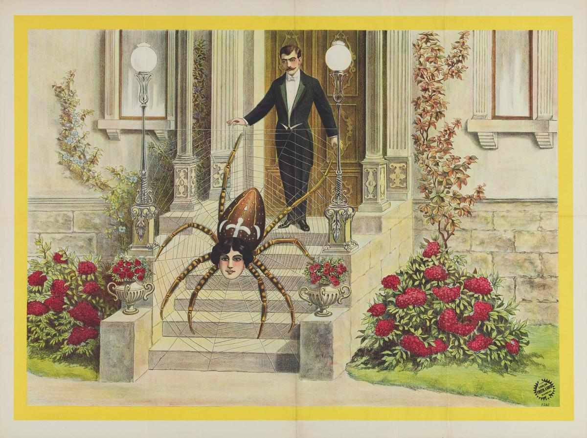 Man met web met spin met vrouwenhoofd