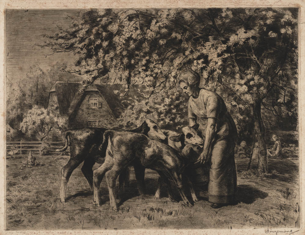 Boerin met kind en vee