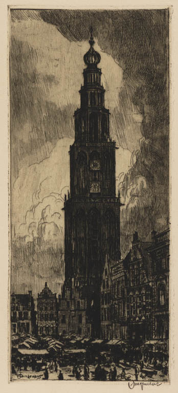 Gezicht op Lieve Vrouwe Kerk en Toren te Amersfoort,...
