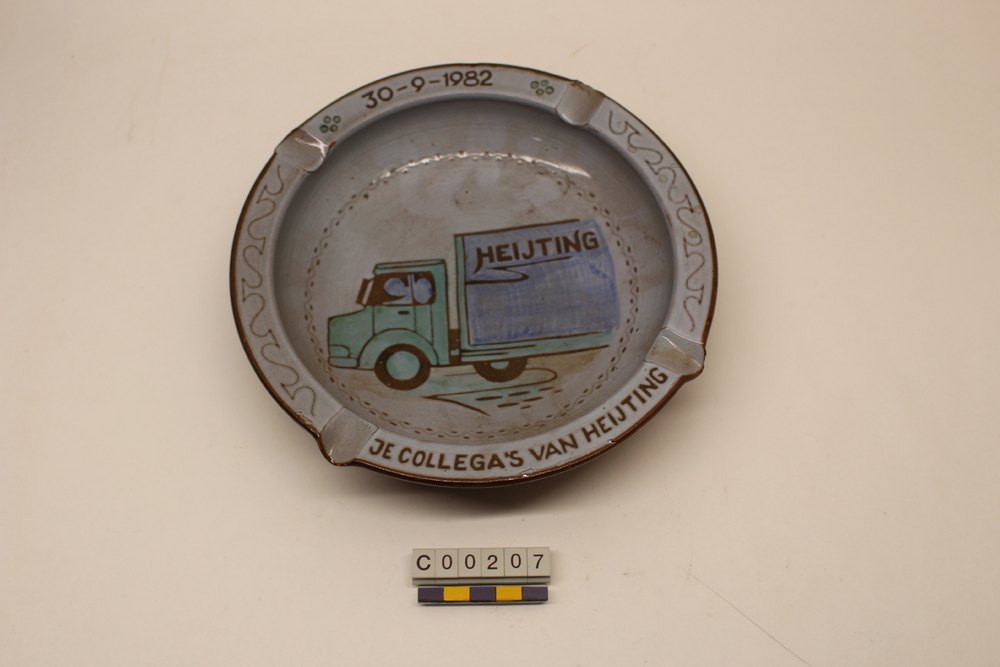 Tegel in onderglazuur, met voorstelling: Reclametege...