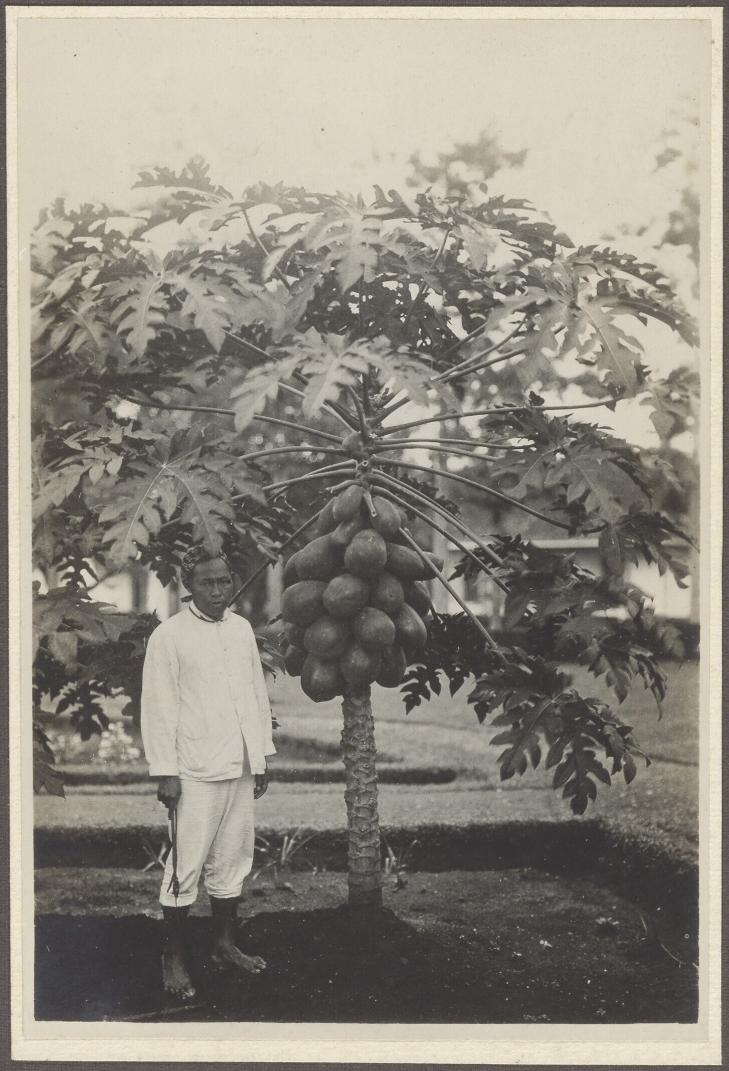 Een papayaboom in volle dracht