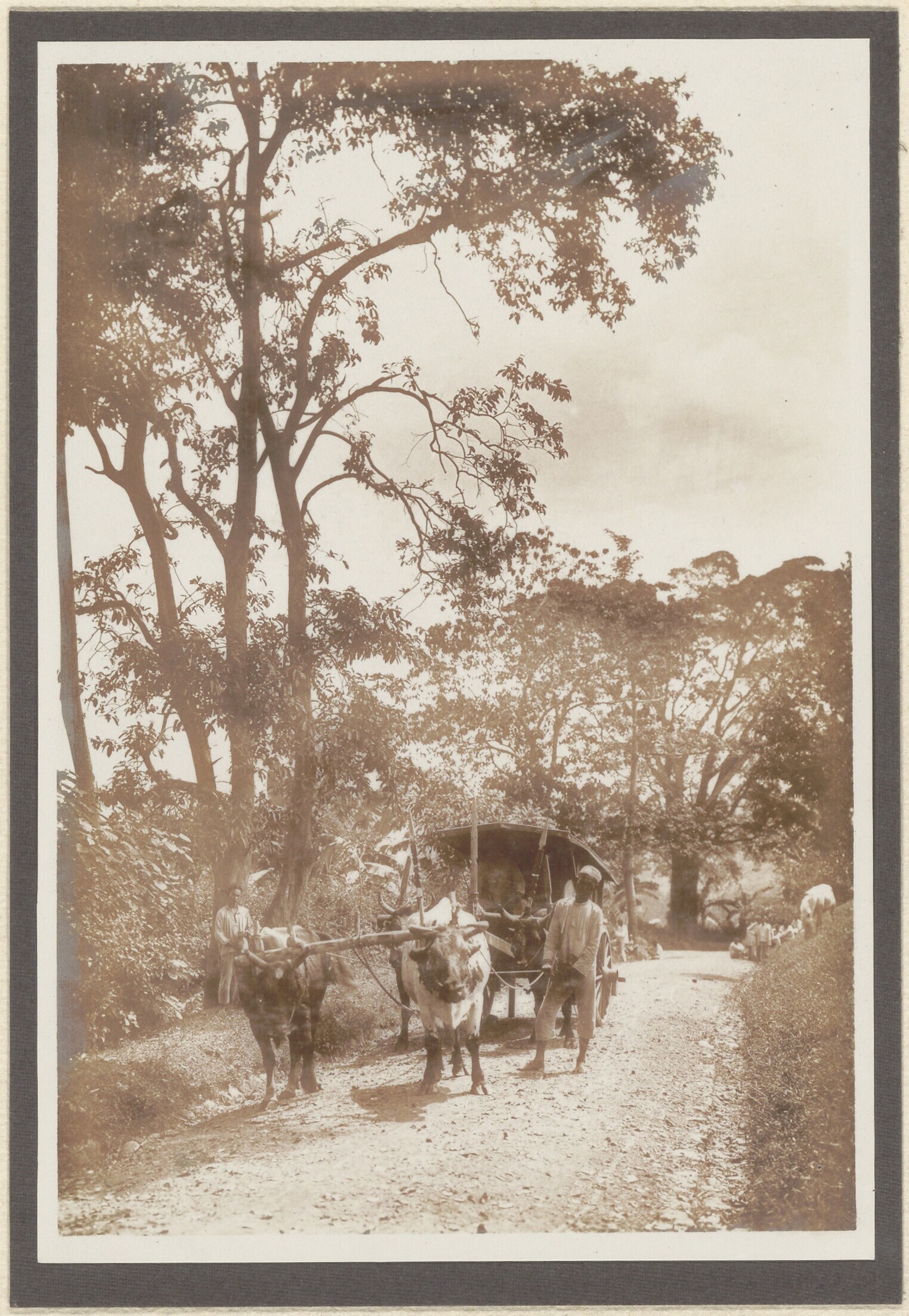 Vier stieren trekken een kar met patiënten voort