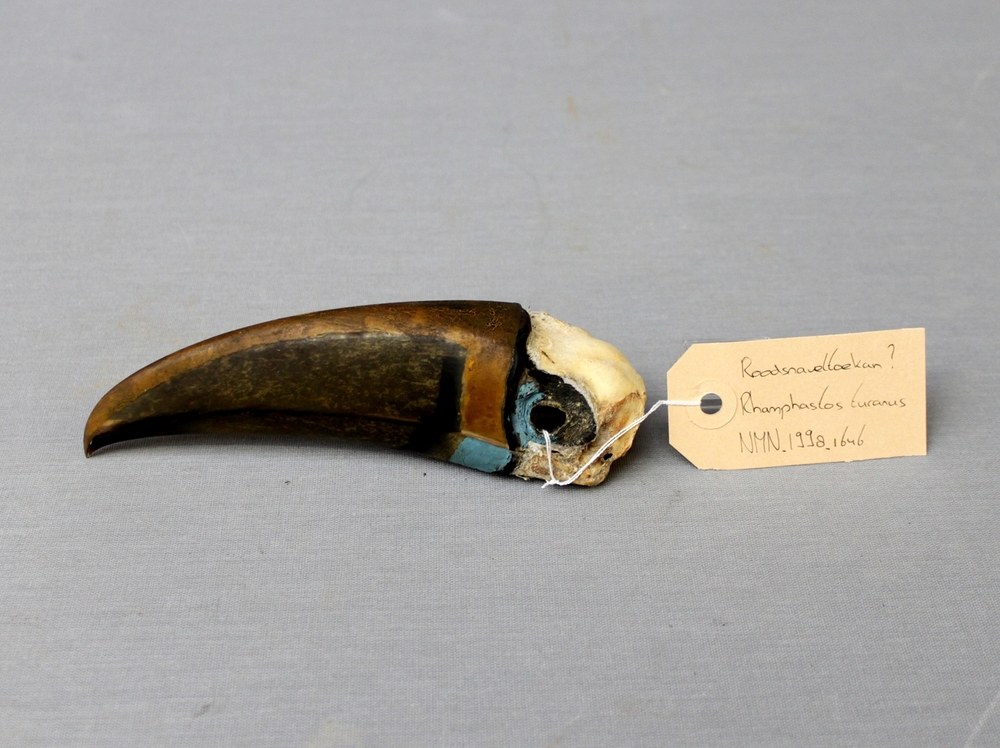 Roodsnaveloekan; schedel met ondersnavel; geverfde s...