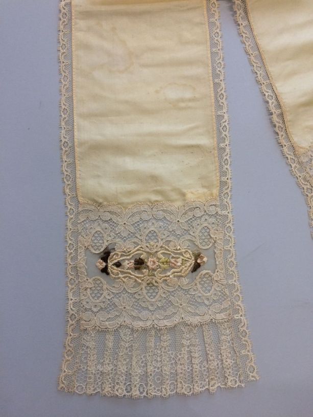 Enkele losse mouwopslag van Zaans stikwerk, van baby...