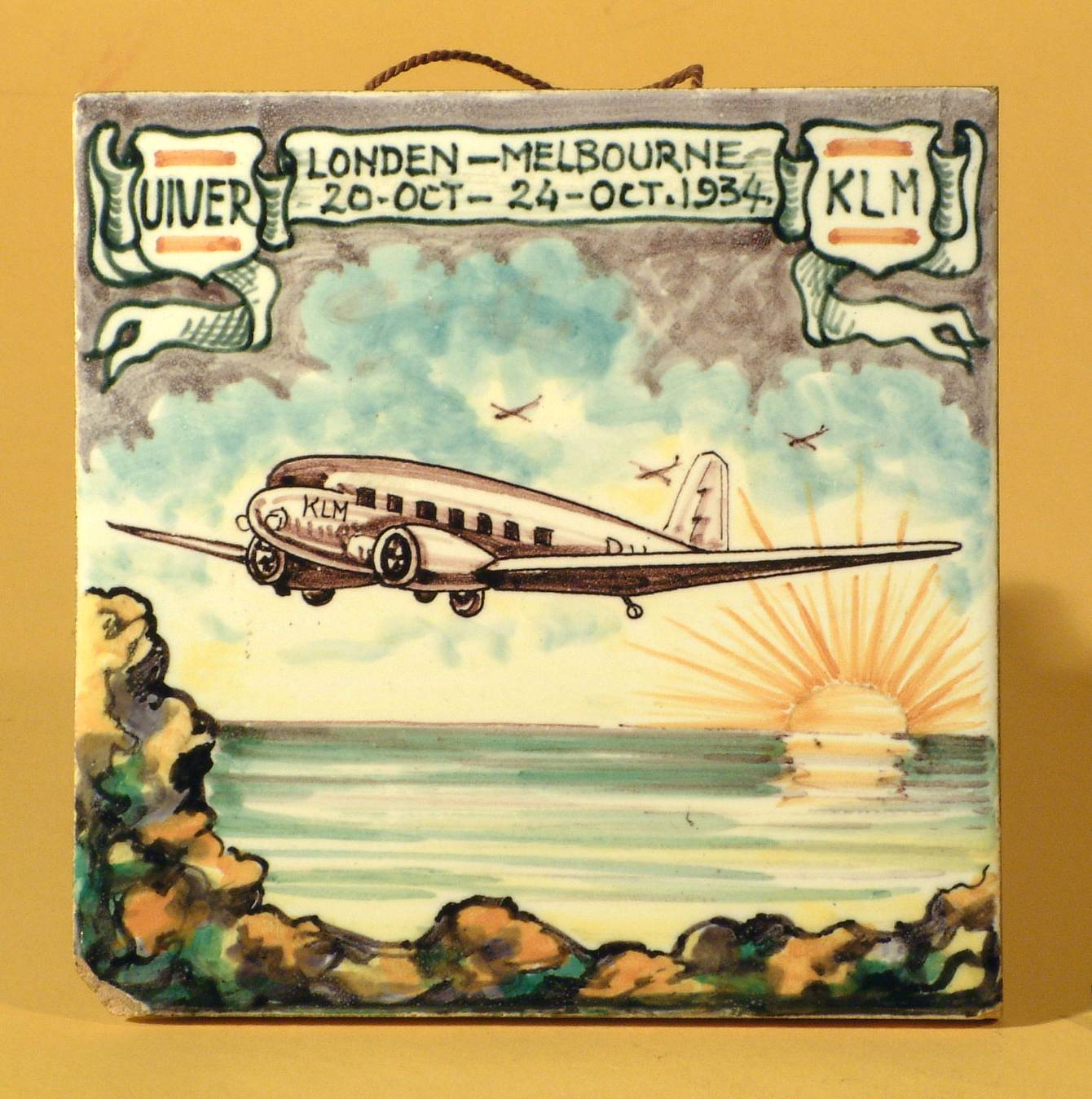 Tegel ter herinnering van de historische vlucht met ...