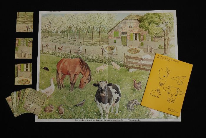 Kwartet van boerderijdieren voor kleuters, met handl...