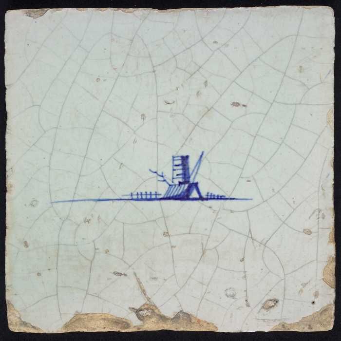 Tafereeltegel, blauw, woning en toren of baak, geen ...