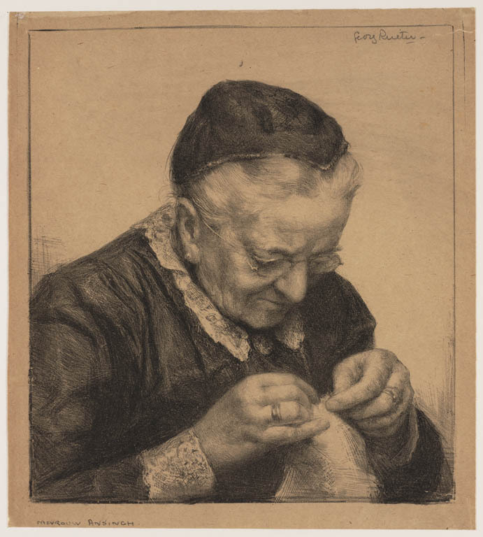 Portret Gerarda Rueter-de Lang, handwerkend
