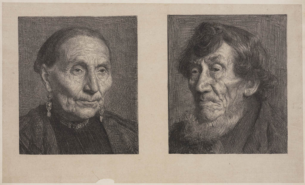 Twee portretjes van een boer en boerin in Sloterdijk