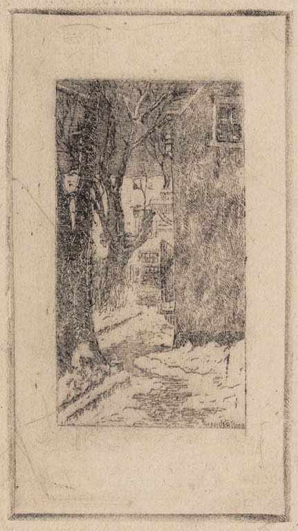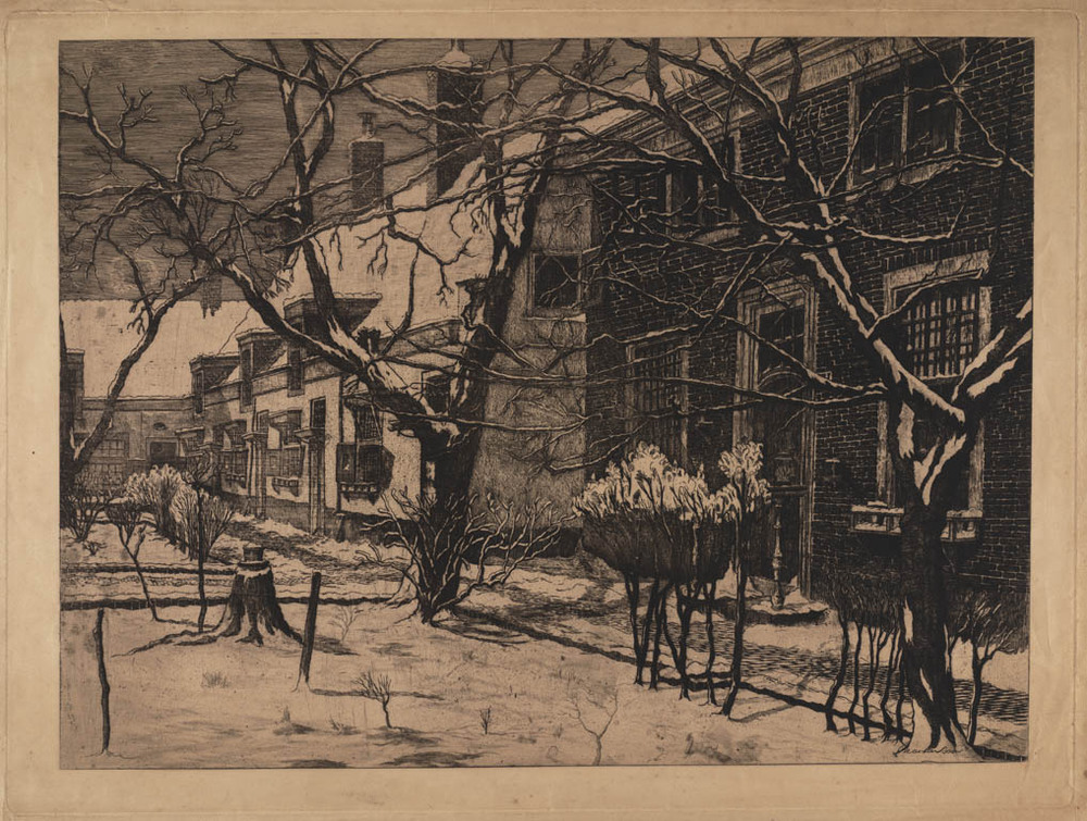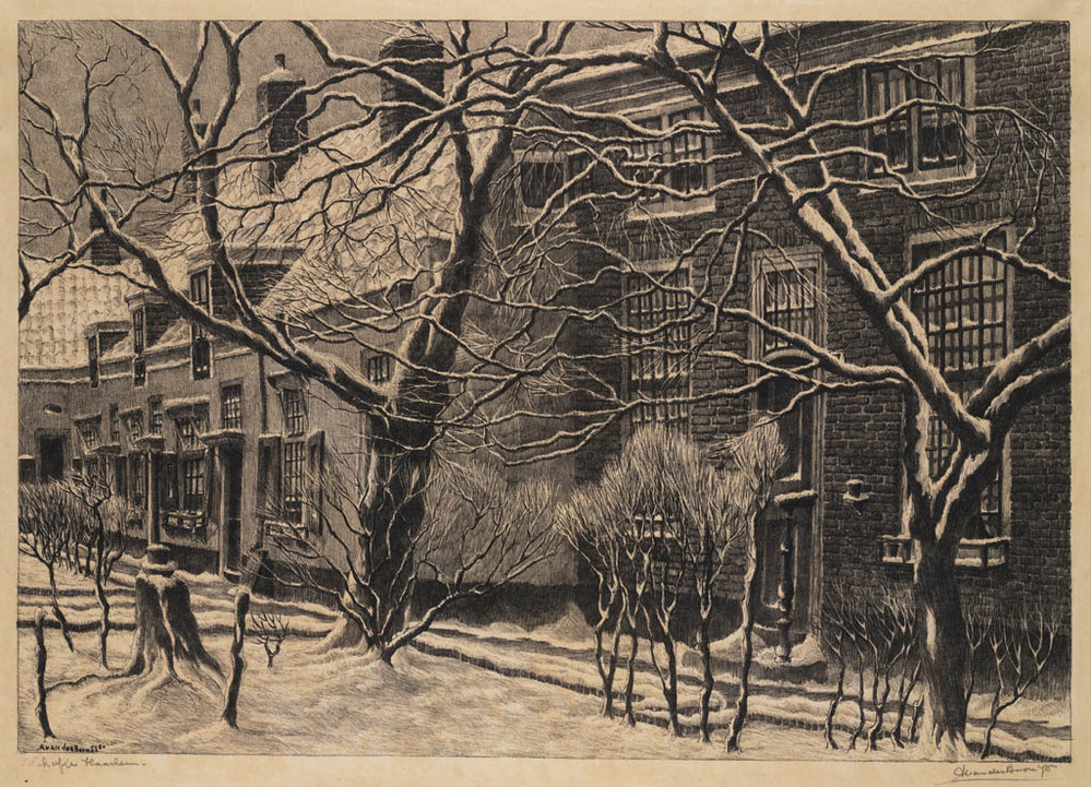 Barrevoetshofje te Haarlem in de sneeuw