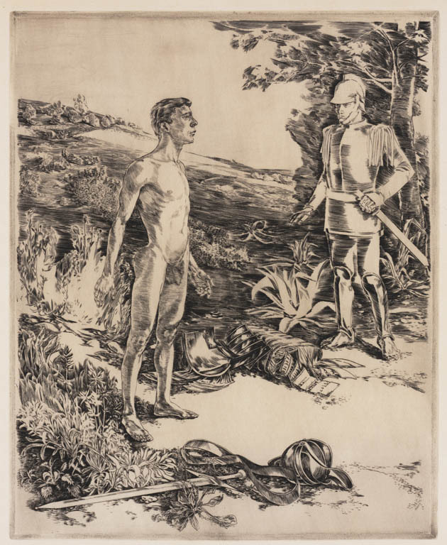 Naakte man en soldaat