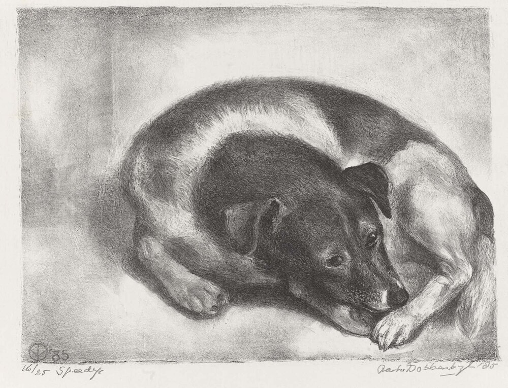 Liggende hond "Speedy"
