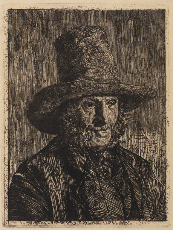 Portret van een Gooise boer met hoge hoed