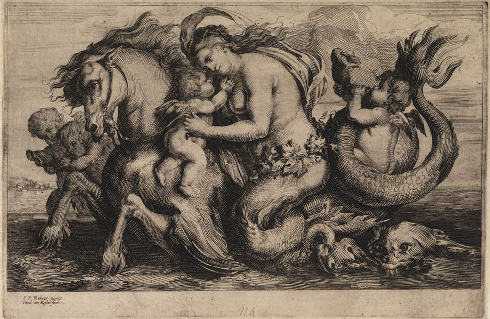 Een nereïde rijdend op een hippocampus