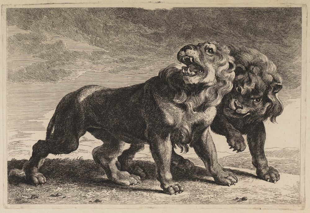 Studie van twee leeuwen